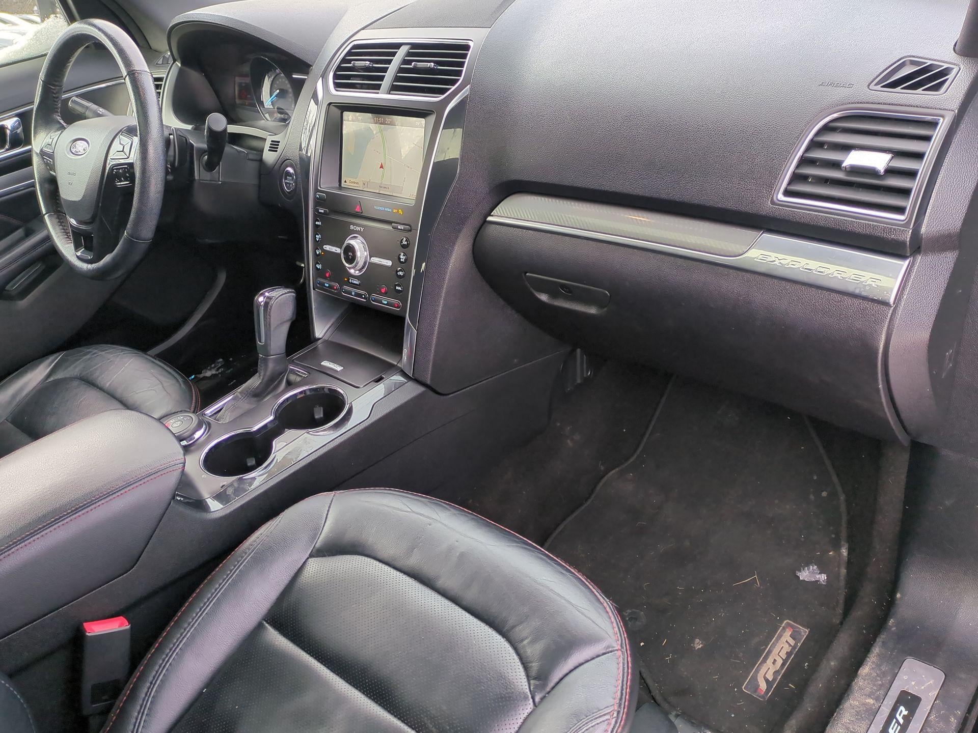 Certified. Black 2019 Ford Explorer Sport 4WD 6-Speed Automatic with Select-Shift 3.5L V6 4WD, 3rd row seats: split-bench, AppLink/Apple CarPlay and Android Auto, Equipment Group 400A, Exterior Parking Camera Rear, Heated door mirrors, Heated front seats, Heated steering wheel, Navigation System, Power Liftgate, Premium audio system: Sony, Remote keyless entry, Steering wheel mounted audio controls, Turn signal indicator mirrors, Twin Panel Moonroof.
