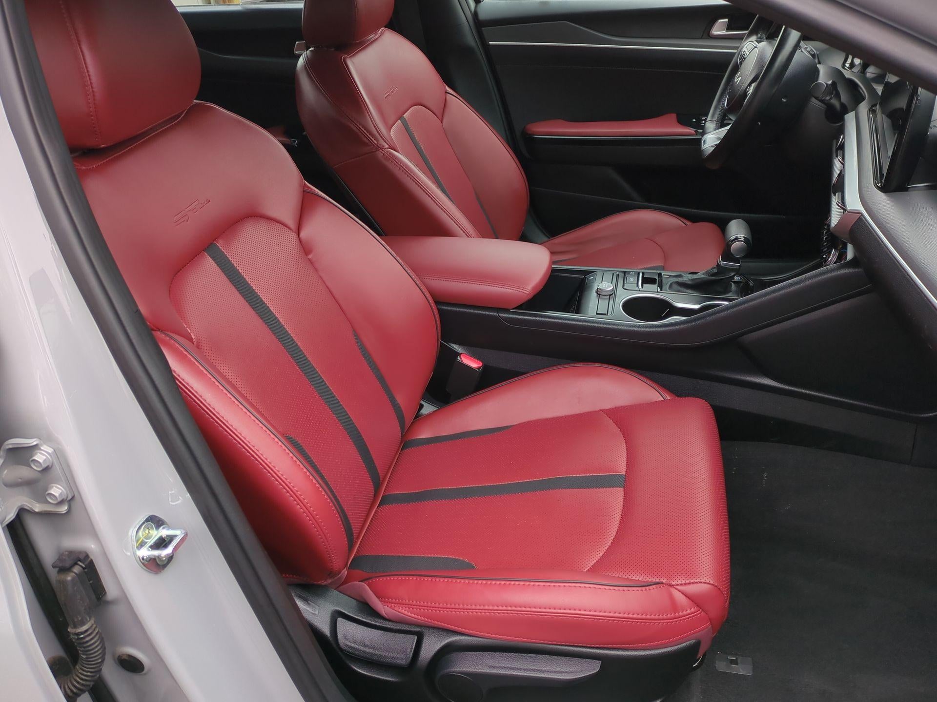 Certified. Wolf Gray 2023 Kia K5 GT-Line FWD 8-Speed Automatic 1.6L I4 DGI Turbocharged DOHC 16V LEV3-ULEV70 180hp **VERY SHARP LOOKER**THIS 2023 KIA K5 GT-LINE IN WOLF GRAY WITH SCARLET RED PREMIUM LEATHER SEATING**POWER WINDOWS**POWER LOCKS**POWER MIRRORS**POWER SEAT**10.25IN TOUCHSCREEN W/NAVIGATION**PREMIUM SIRIUS/XM SOUND SYSTEM**, REAR VISION CAMERA W/DYNAMIC GUIDELINES**DUAL-ZONE CLIMATE CONTROL**TILT & TELESCOPING STEERING WHEEL**KIA SMART CRUISE **, SPORT PERFORMANCE STEERING WHEEL W/AUDIO CONTROLS**REAR SPOILER**, REMOTE KEYLESS ENTRY**REMOTE START**PREMIUM 18IN GLOSS BLACK ALUMINUM SPORT WHEELS**, Air Conditioning, Apple CarPlay & Android Auto, Automatic temperature control, Brake assist, Bumpers: body-color, Carpeted Floor Mats, Electronic Stability Control, Forward Collision Avoidance-Assist, Front dual zone A/C, Front fog lights, GT-Line Premium Package, GT-Line Red Interior Package, Heated door mirrors, Highway Driving Assist, LED Projection Headlamps, Power door mirrors, Power driver seat, Power steering, Power windows, Rear window defroster, Remote keyless entry, Security system, Smart Cruise Control w/Stop & Go, Speed control, Speed-sensing steering, Sport steering wheel, Steering wheel mounted audio controls, Tachometer, Telescoping steering wheel, Tilt steering wheel, Turn signal indicator mirrors.